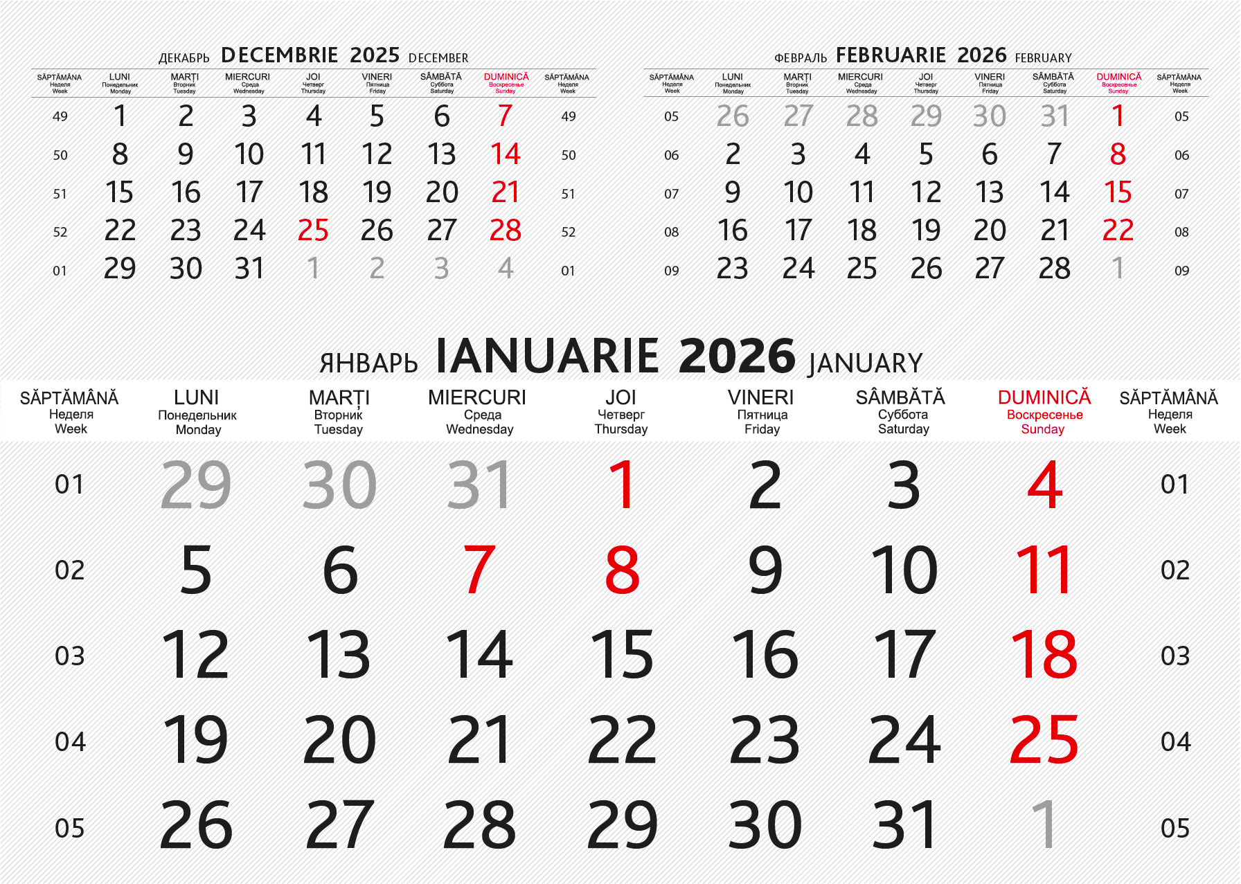 Сетка календарная для настенного квартального календаря Mono