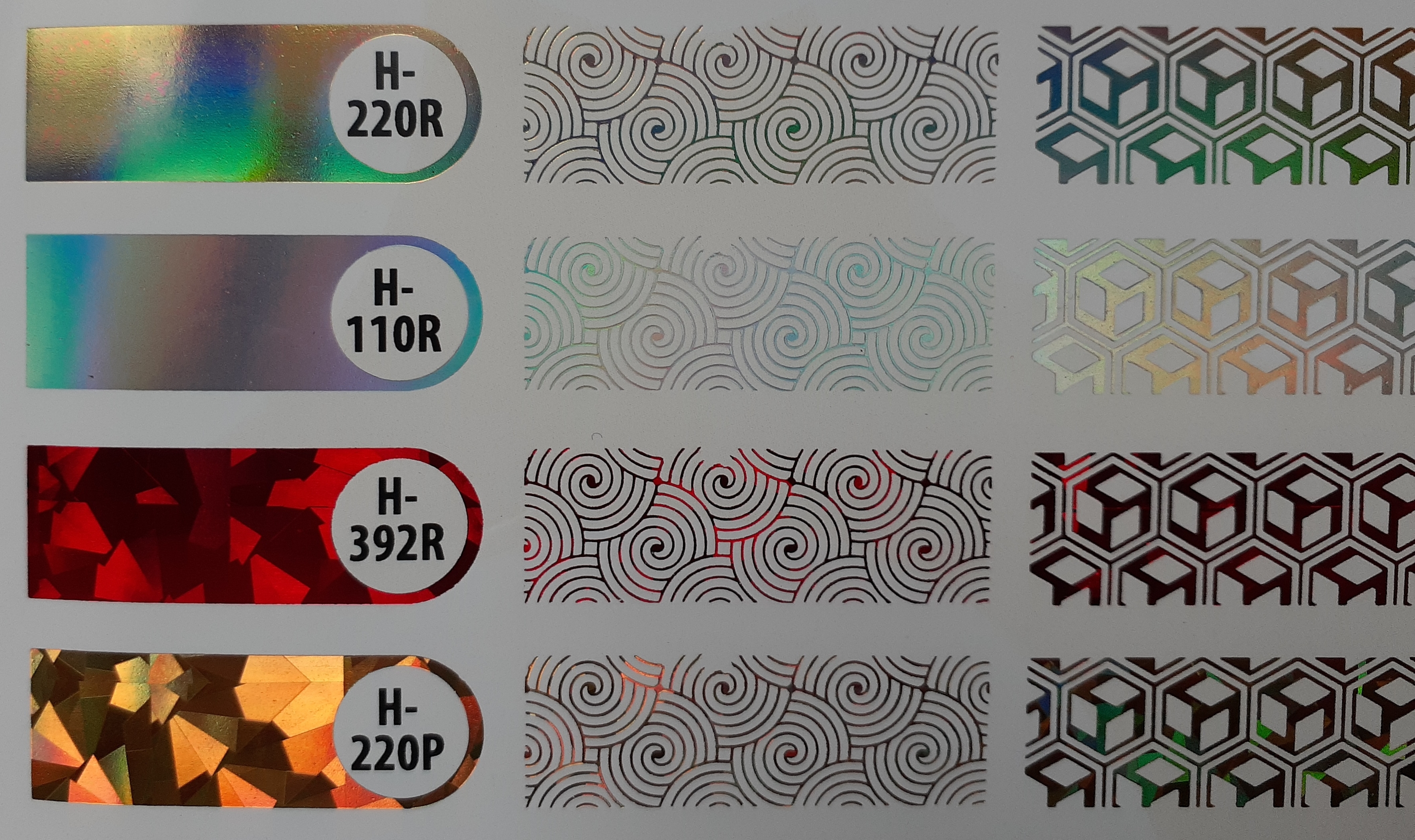 Выбор фольги зависит от типа покрываемой поверхности, устойчивости материала к высокой температуре, вида изображения, которое необходимо тиснить, и также имеет значение тип оборудования.