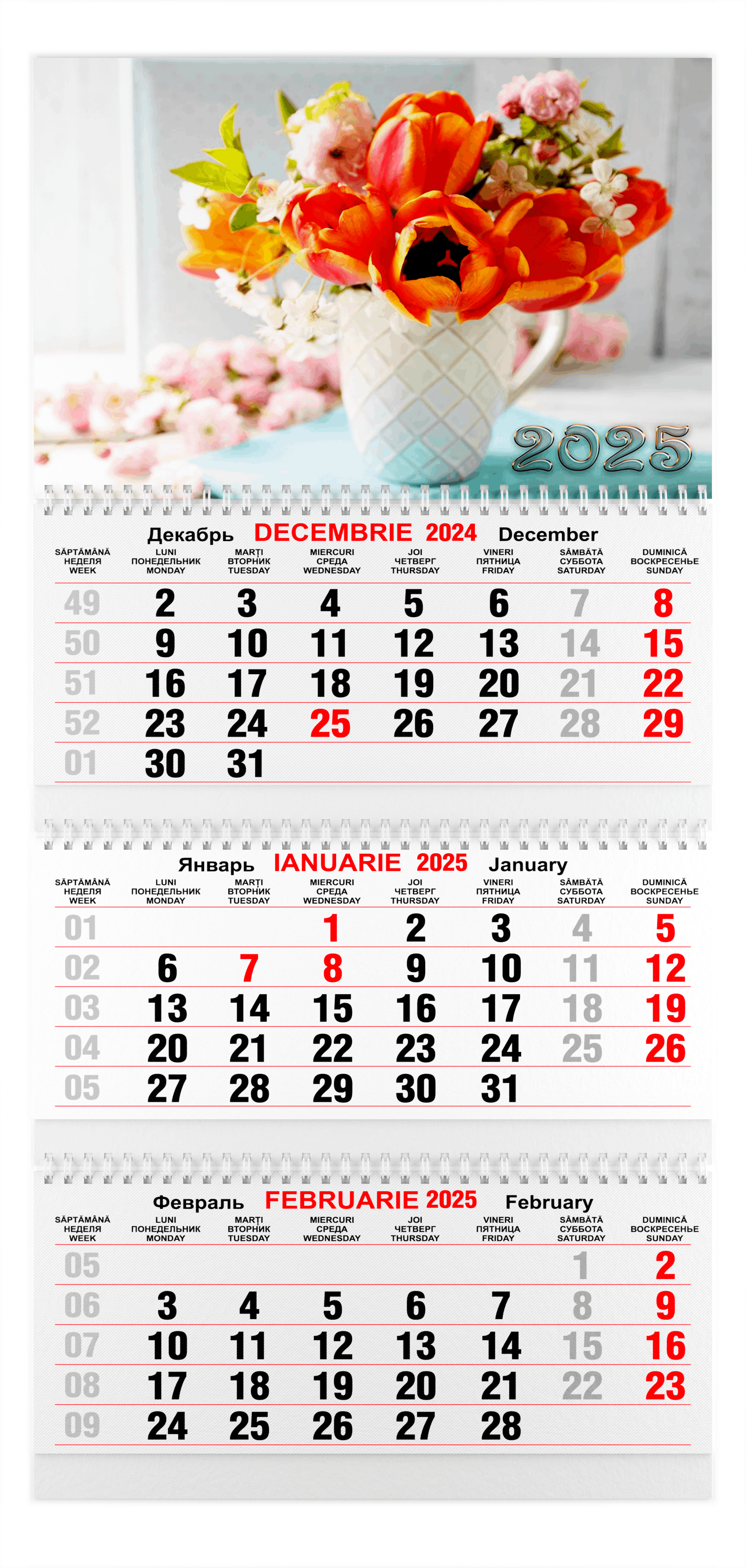 Календарь настенный 2025 квартальный. 297 х 470 мм, в сложенном виде 297 х 215 мм