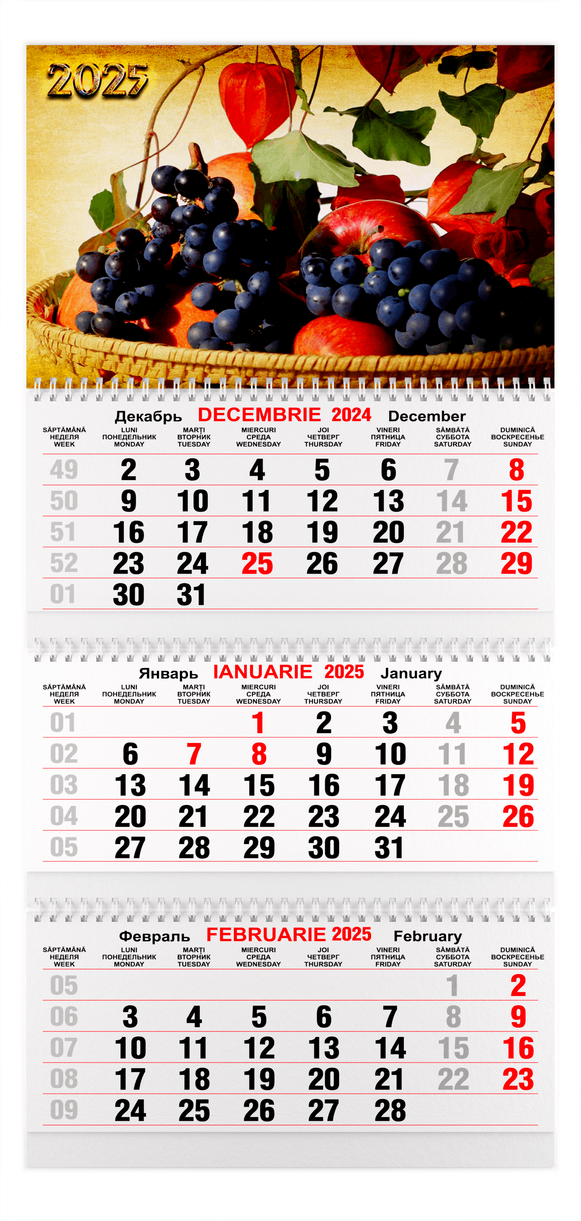 Календарь настенный 2025 квартальный. 297 х 470 мм, в сложенном виде 297 х 215 мм